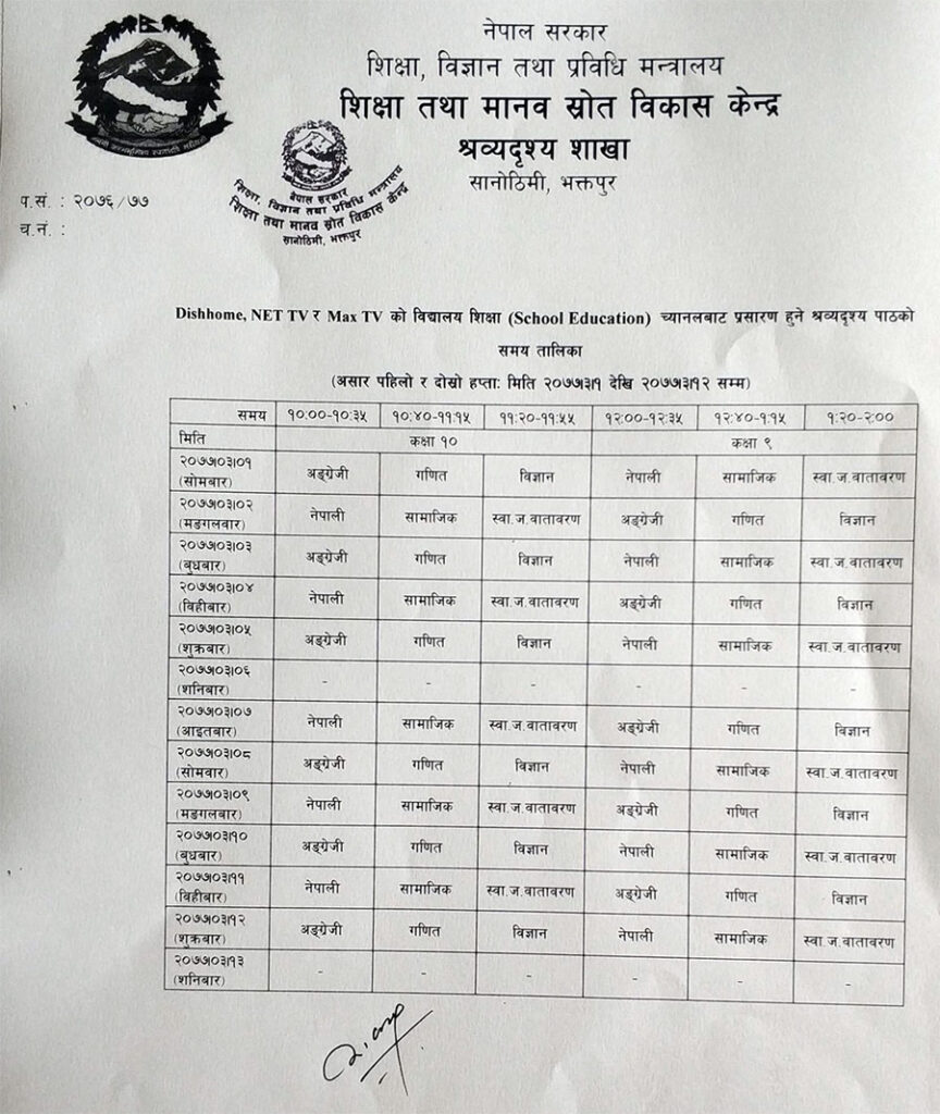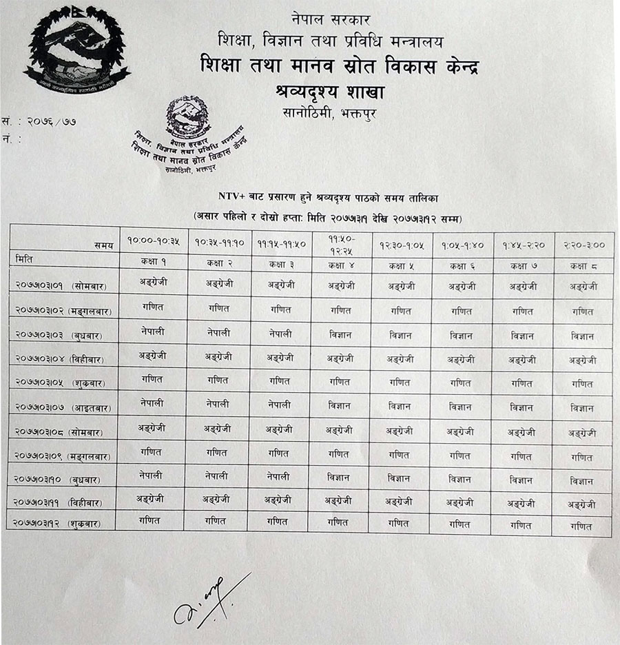 असार १ बाट रेडियो र टिभीबाट पढाउन सुरु गर्ने( तालिकासहित)
