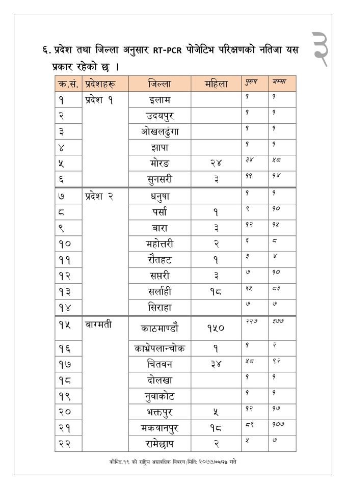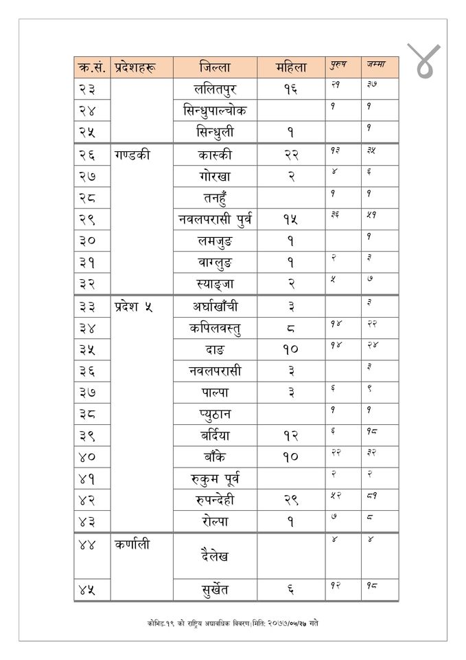 कहाँ कति थपिए कोरोना संक्रमित ? (सूचीसहित)