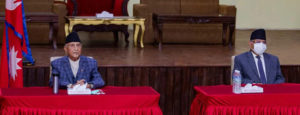 काठमाडौं । सत्तारुढ नेपाल कम्युनिस्ट पार्टी नेकपाका अध्यक्ष समेत रहेका प्रधानमन्त्री केपी शर्मा ओली सचिवालय बैठकमा गलेका छन् । नेकपाका कार्यकारी अध्यक्ष पुष्पकमल दाहाल ‘प्रचण्ड’ र वरिष्ठ नेता माधव कुमार नेपाल गठबन्धनसँग ओली गलेका हुन् । प्रधानमन्त्री ओली गलेसँगै नेकपाले स्थायी कमिटीको बैठक बोलाएको छ । यसअघि ओली पक्ष स्थायी कमिटीको बैठक बोलाउने पक्षमा थिएन … Continue reading प्रचण्ड-नेपालसँग गले ओली, सचिवालय बैठकले बोलायो स्थायी कमिटी