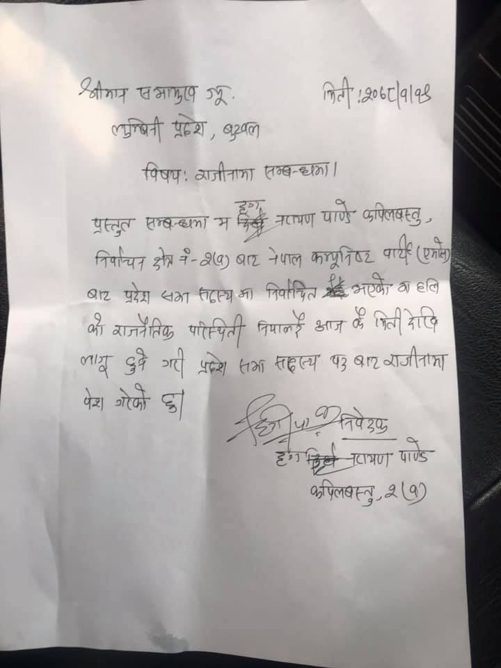 लुम्बिनीमा एमालेका तीन सांसदले दिए पदबाट राजीनामा