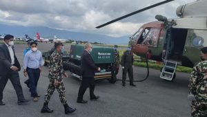 बागलुङ उडेको गृहमन्त्रीको हेलिकप्टर खराब मौसमका कारण पोखरामा अवतरण